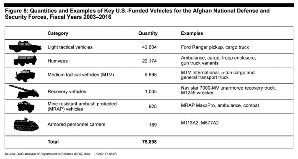 This is a very detailed Forbes article about all the equipment that the former Afghan military received from the U.S. since 2003. It is stunning! How much did Afghanistan pay for it?