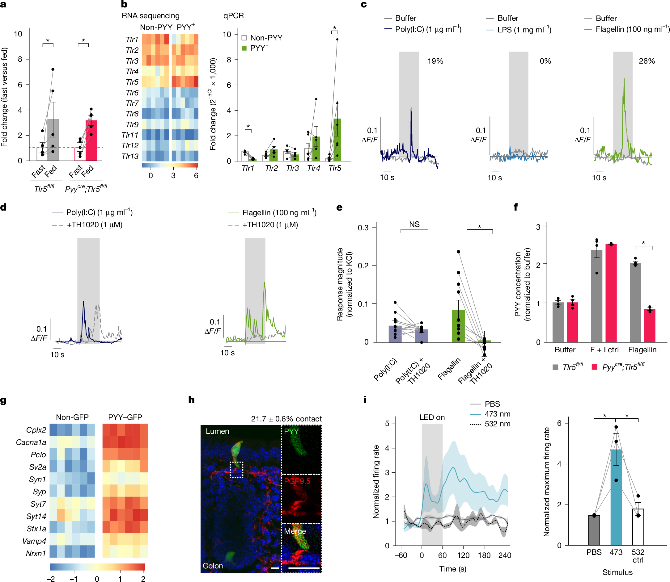Fig. 2: PYY-labelled cells sense microbial flagellin through TLR5.