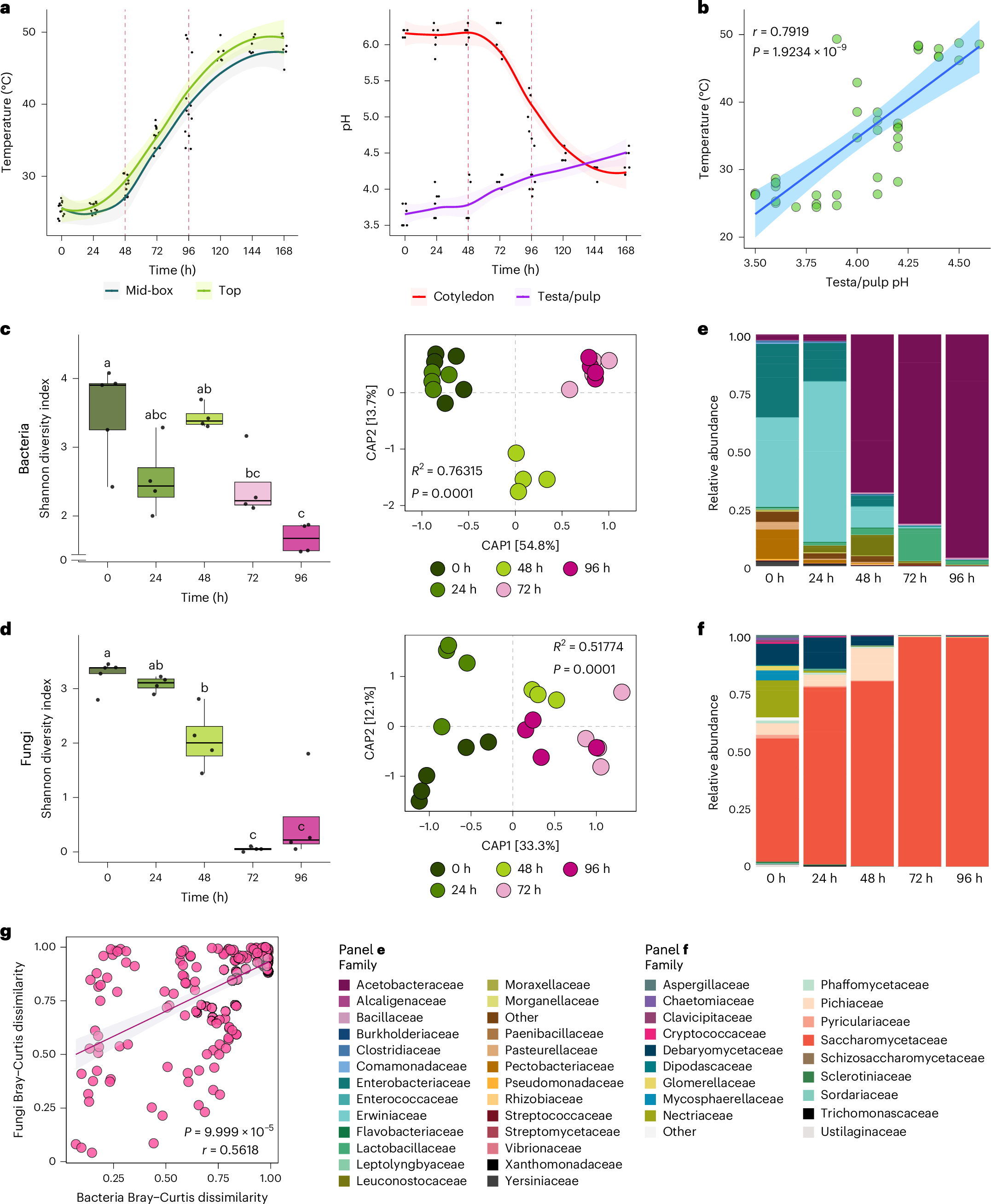 Fig. 1: Changes in abiotic and biotic characteristics inform the progression of cocoa bean fermentation.